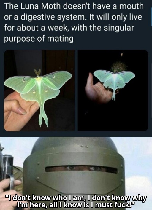 That’s pretty fascinating evolutionarily. It has a metamorphosis stage literally just so it can get wings to better find a mate, fuck, and die.