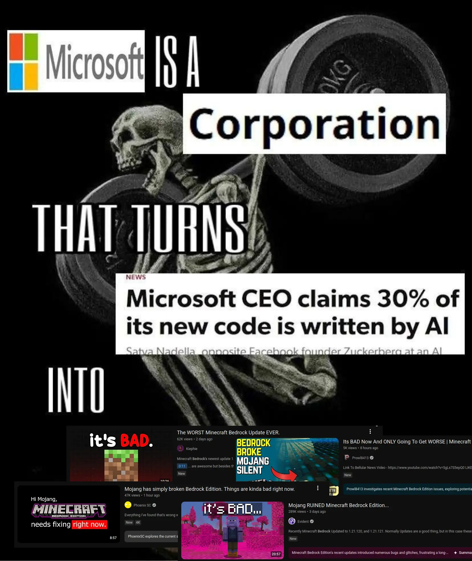 Bedrock edition has always had dogshit coding though. Could be AI is making it worse or it could be the fact they’ve neglected to fix game breaking bugs for years and all the new buggy code is making it worse.