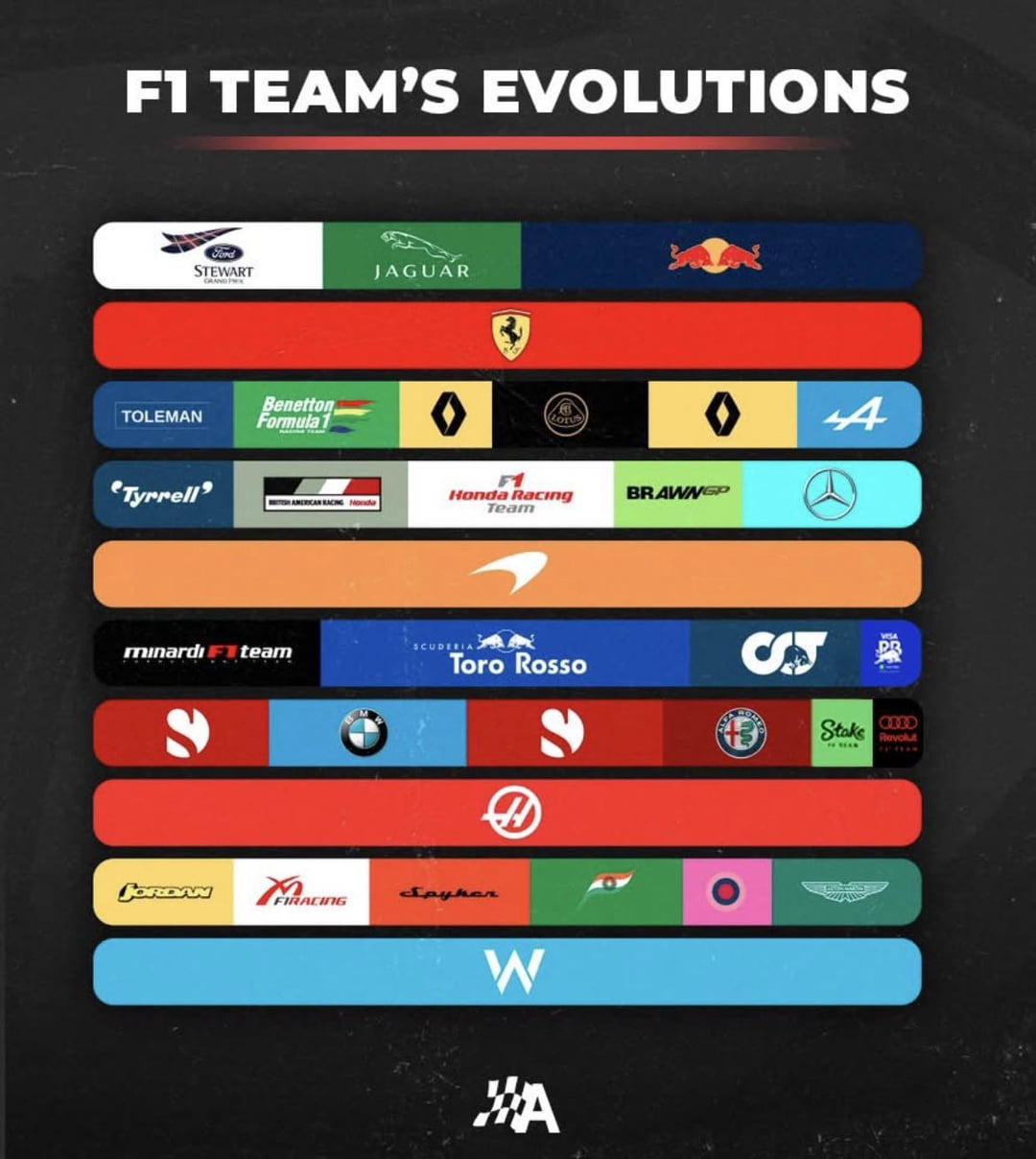 https://www.reddit.com/r/formula1/comments/1abfnkk/current_f1_teams_throughout_the_years/