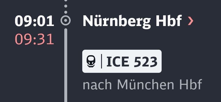 “Your halt has been canceled today…”I went there for my train, and there was a large amount of people waiting for the late previous ICE. Suddenly, the display showing the late train switched to the train I was waiting for, and a moment later, an ICE rushed through on the center track.