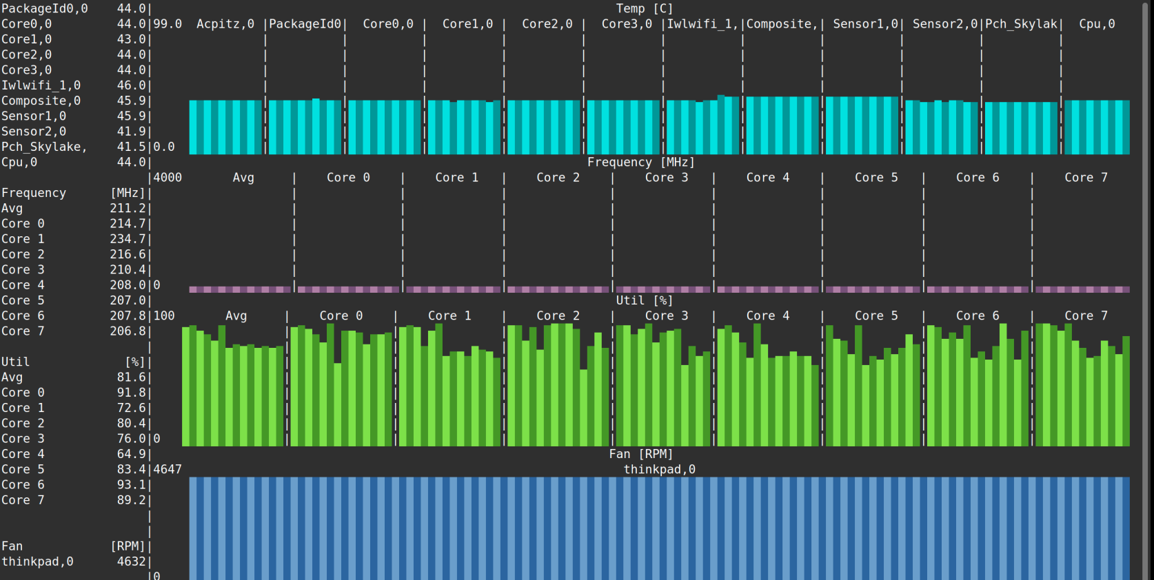 Then from one moment to the other - everything slowed down, while only watching one YouTube video. I checked s-tui and CPU frequencies are down to ~200MHz while load is pretty heavy. Every click has a lag of multiple seconds, I couldn’t even open Shutter to make a screenshot as it is not responding.