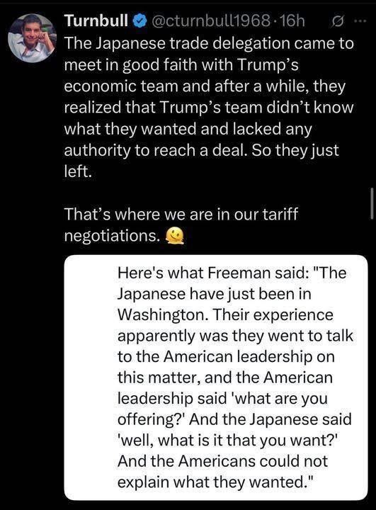 Japan said they might try to import more US rice, but they yen is still really weak right now (even if the dollar is trying to race it by jumping off a cliff). I don’t think the Japanese govt quite grasps how fucking stupid the Orange administration is yet.