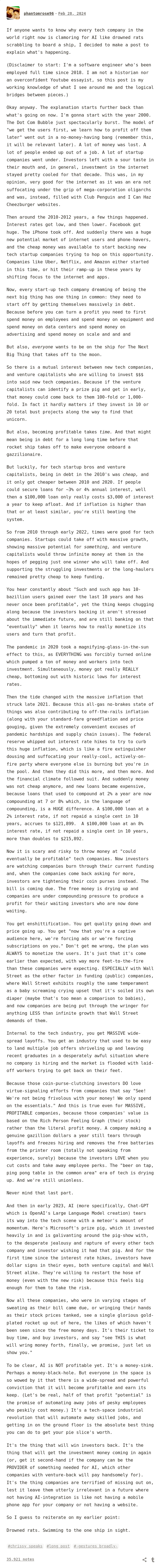 If anyone wants to know why every tech company in the world right now is clamoring for AI like drowned rats scrabbling to board a ship, I decided to make a post to explain what’s happening.