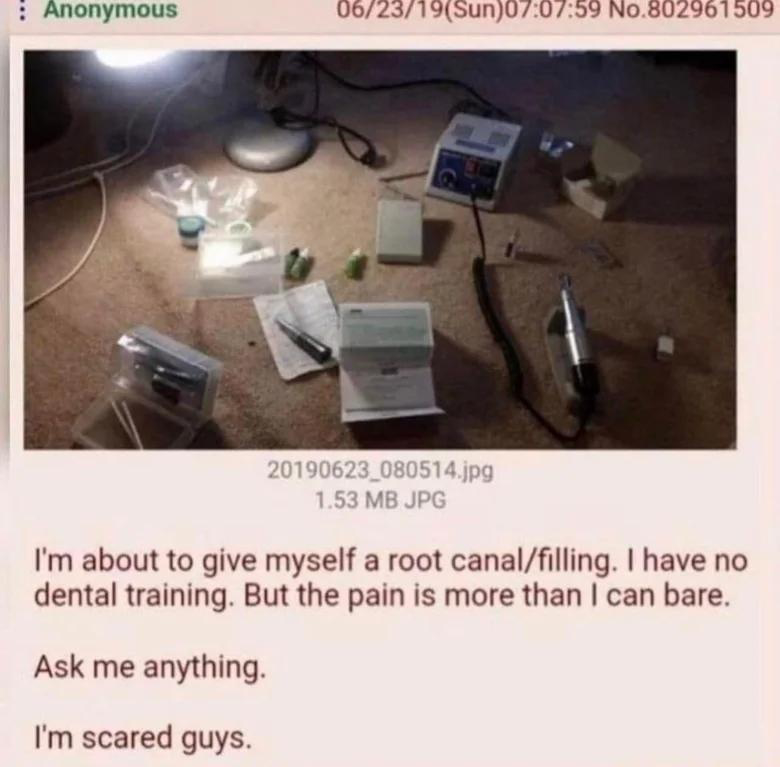 Oh, man, the risk of infection in a bone is SO high, and can easily be fatal. Very bad idea. He’d be better off yanking the tooth.