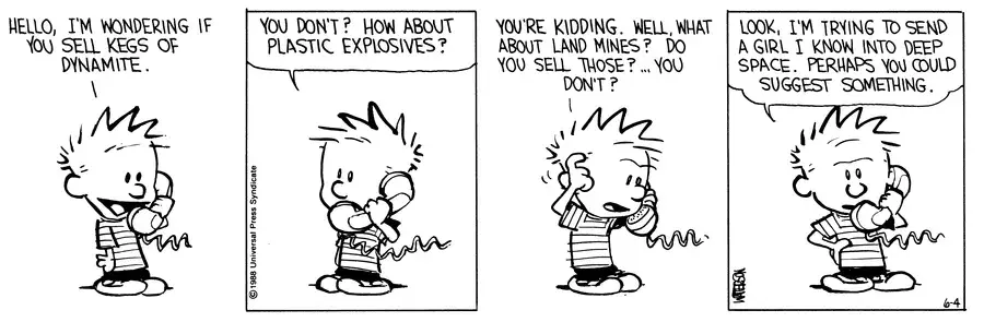 I digress. Calvin definitely has a van parked outside. Or at least he can imagine he does, which is close enough.