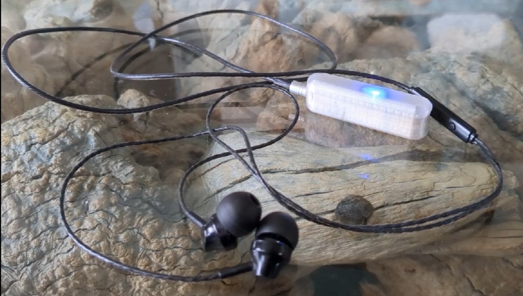It’s the guts of a pair of headphones, retrofitted with a battery and audio jack. Consider it a Bluetooth audio receiver and DAC with standard audio output.