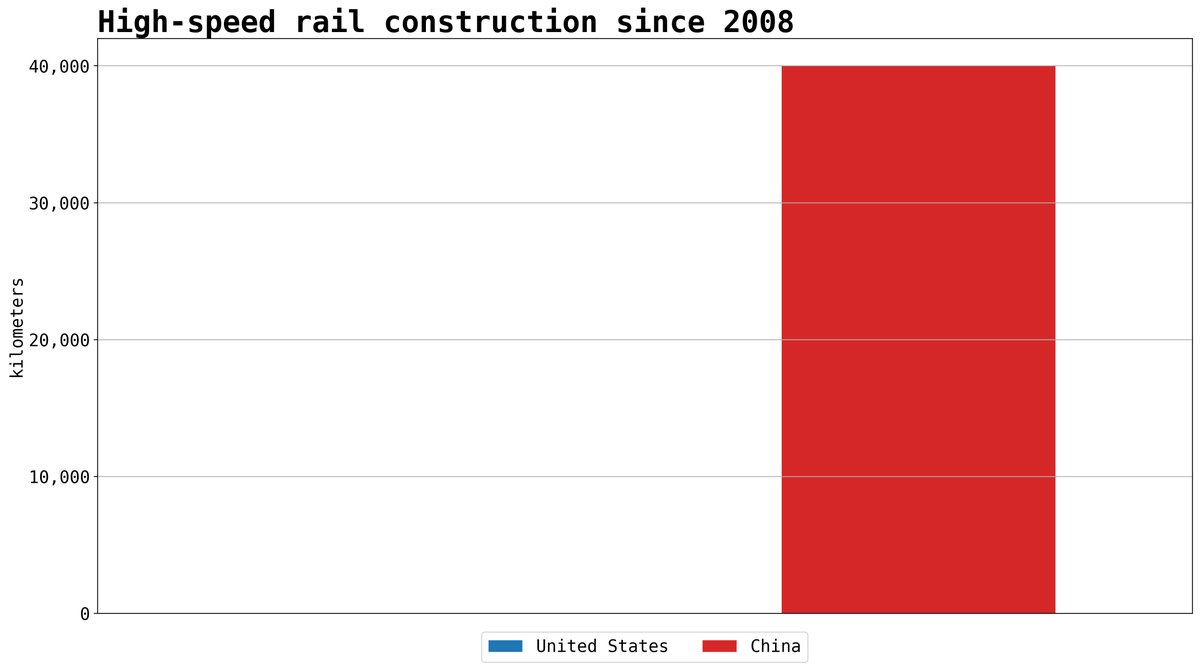 This is blatantly false, California has built high speed rail in that time.