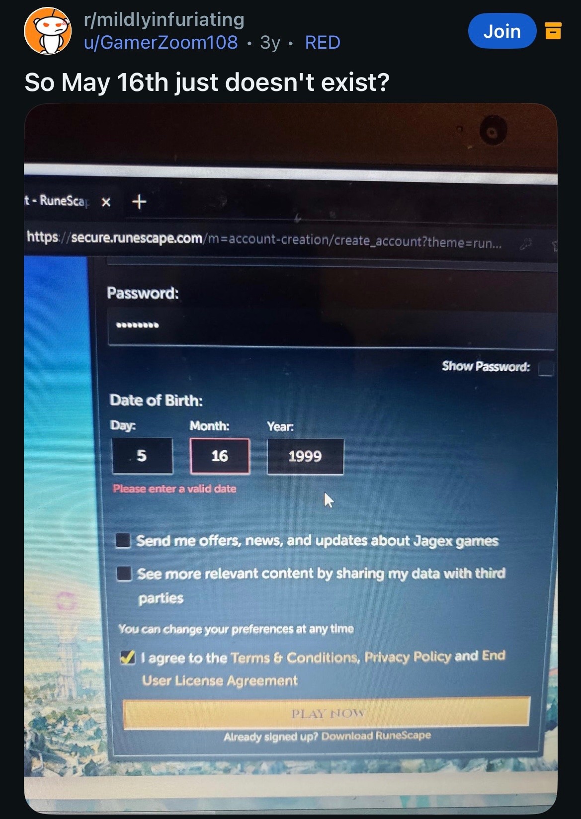 In all fairness they’re creating an account for Runescape 3 so they’re probably not old enough to read yet. Perfect age for a disgusting amount of in-game microtransactions though!