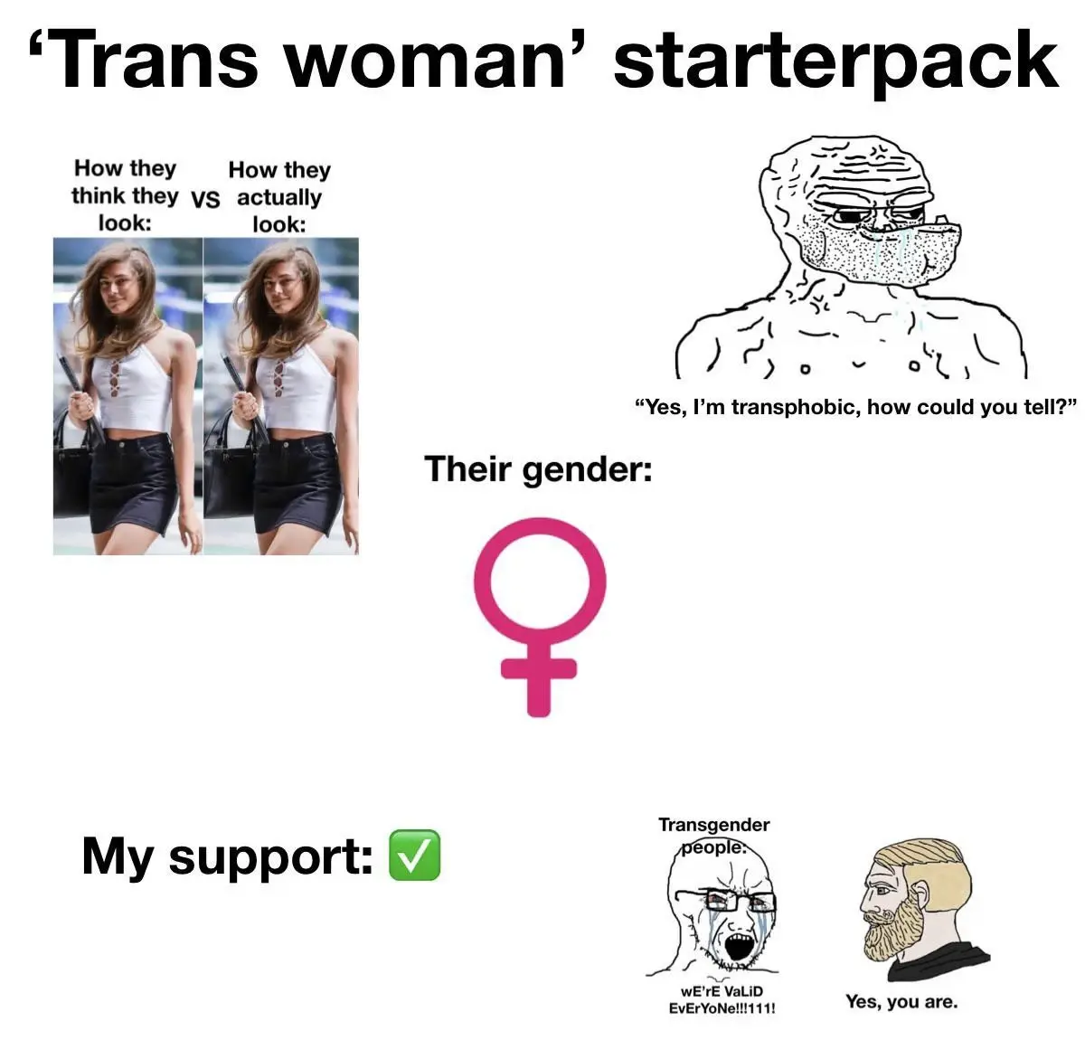 I didn’t make the meme, but it’s definitely trans positive while also making fun of transphobes