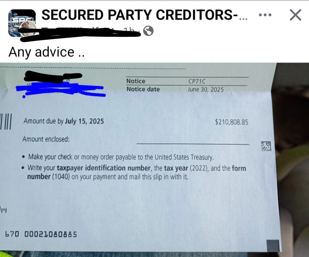 Sovcitizenry aside, I love the IRS just casually handing out a two week time window in which to pay them a hair under a quarter-million dollars 🤣