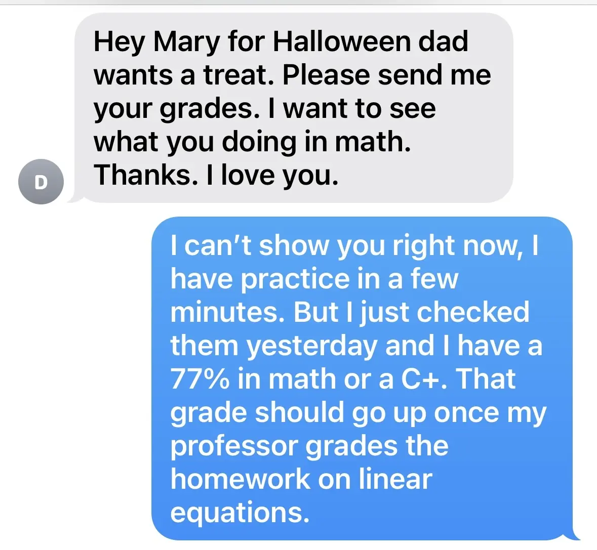 From the simplest things to major concerns, lies have always been a part of my life. As a college student, The biggest thing I’ve lied about is my grades. My parents are always on my ass to do well and ask about my grades constantly. Because my parents can’t see them, I often have to show them over the computer. Luckily, for me, I can only show them what I want them. On the website that shows my grades, there is something called a what if score that you can use to test different scores to see how it will impact your grade. After you’re done using it, your score reverts back to what it originally was. I often use that to turn C’s into A’s, and just crop out the assignments that are marked as missing. This isn’t something I always do, only when I have a bad grade.