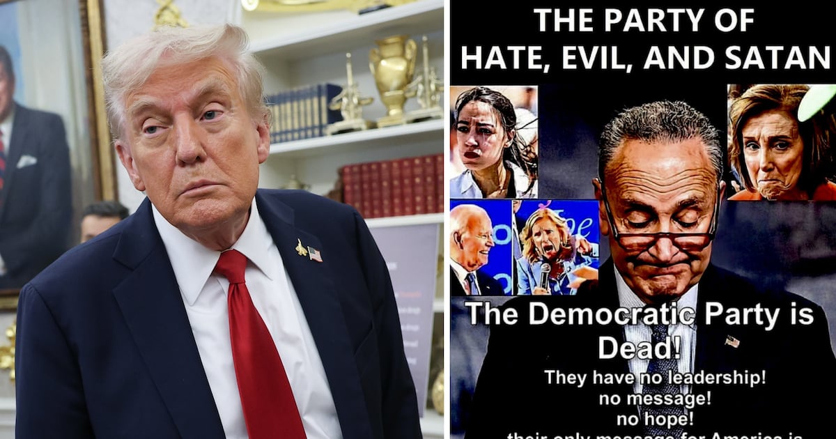 arrow-up1200arrow-down1external-linkTrump Brands Dems the ‘Party of Satan’ in Unhinged Rantwww.thedailybeast.comRedditsux@lemmy.world to politics @lemmy.world · 7 hours agomessage-square42fedilinkfile-text