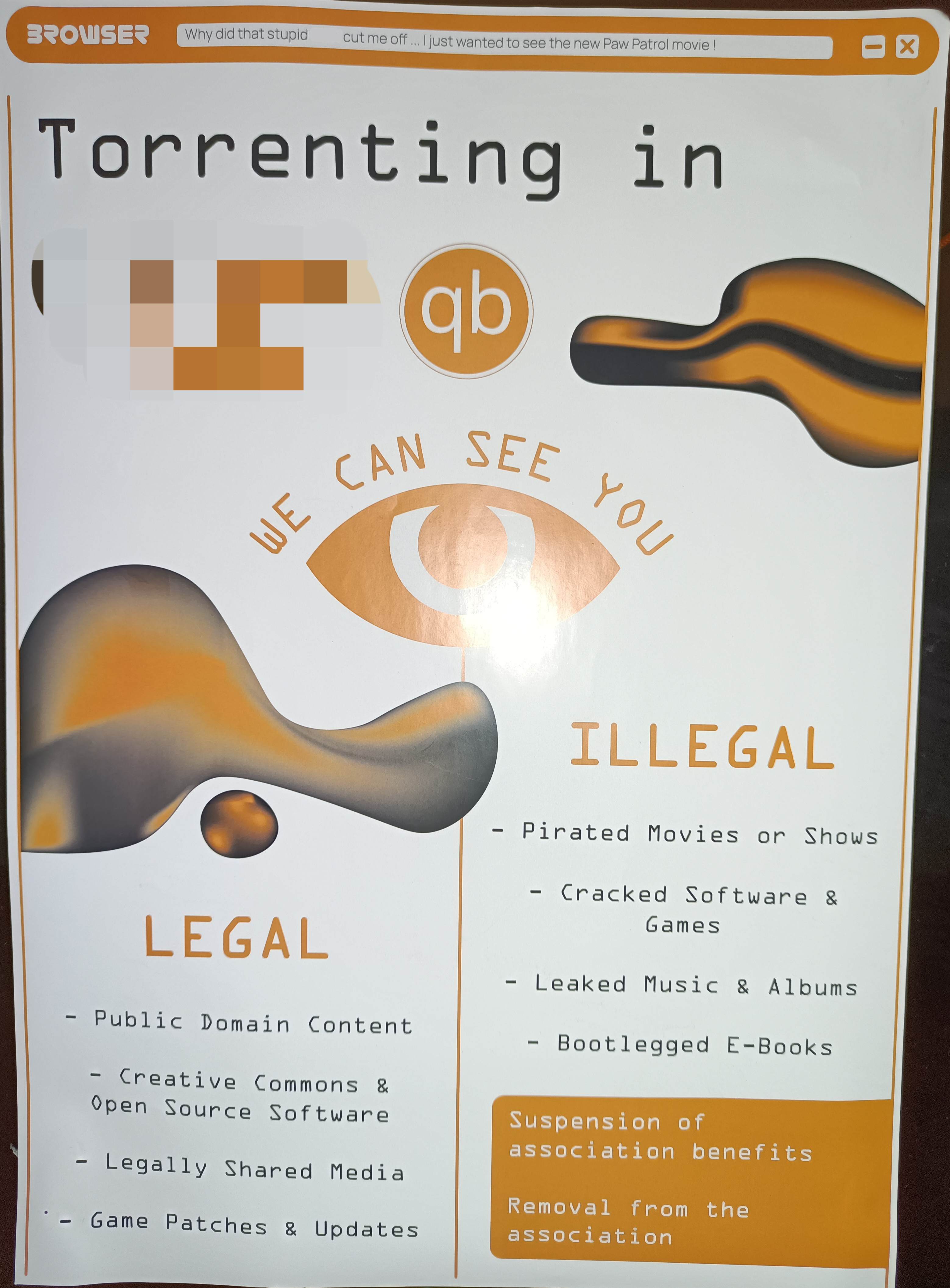 arrow-up1637arrow-down1imageThe internet provider on my dorm explicitly allows legal torrentsfiles.catbox.moeu/lukmly013 💾 (lemmy.sdf.org)@lemmy.sdf.org to Mildly Interesting@lemmy.worldEnglish · edit-216 days agomessage-square168fedilink