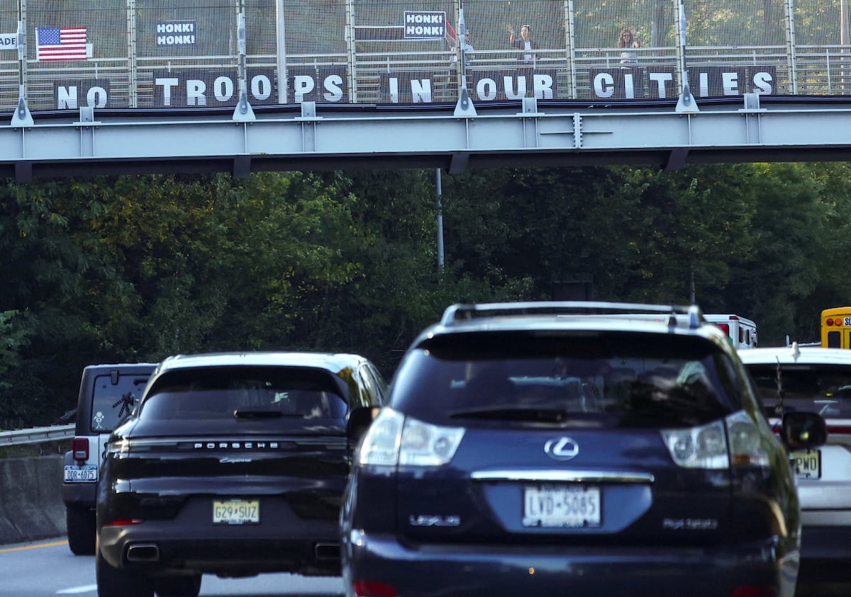 An anti authoritarian government protest, against the deployment of National Guard troops in American cities
