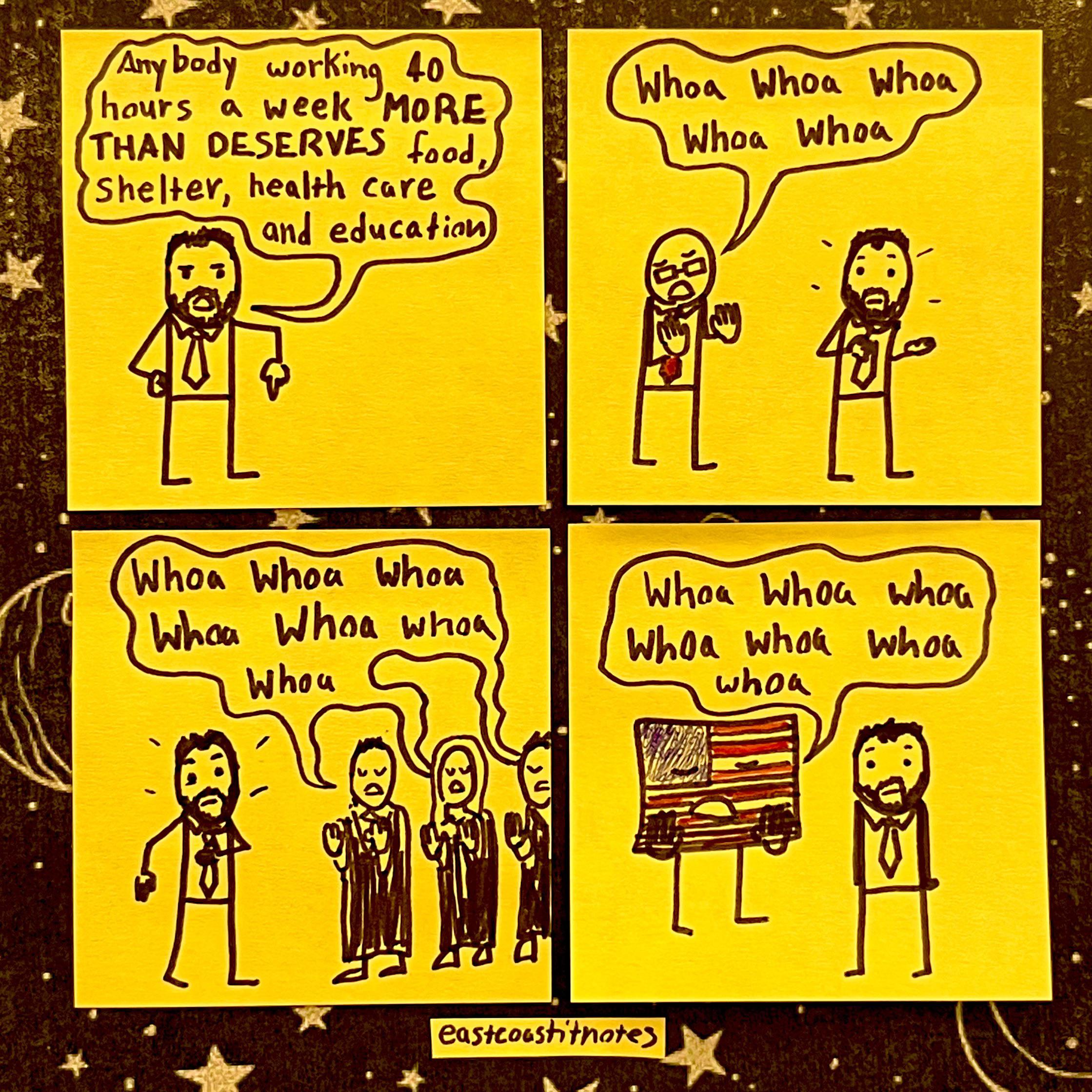 working 40 hours a weekMORE THAN DESERVES food, shelter, health care and education”anyway like you. jesus i’m trying to be racist here