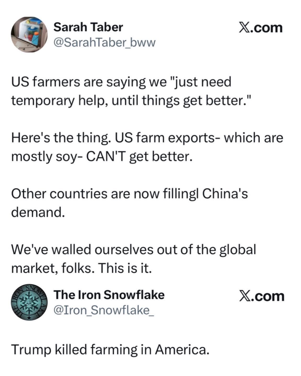 Well the alternative was voting for Harris and I think she would have gone around and personally shot the farmers.