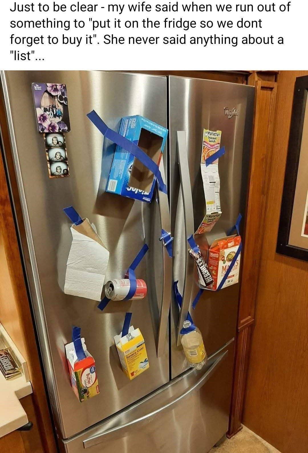 Either they ran out of all those simultaneously or the wife has agreed this is an acceptable solution.