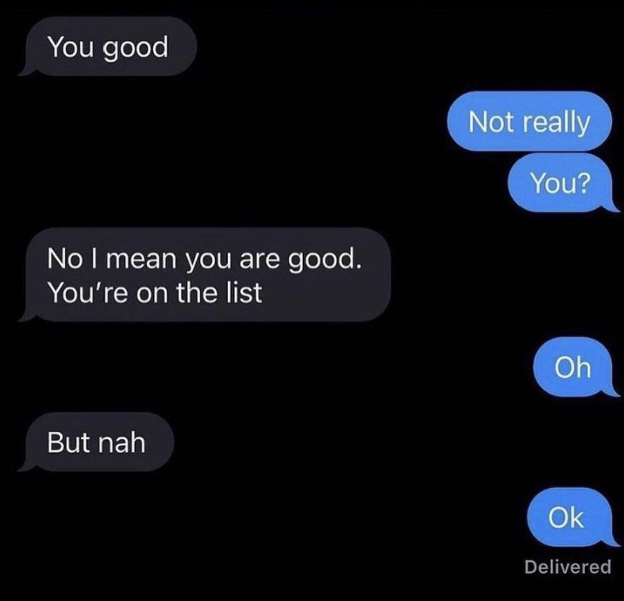 Whenever my wife asks if I’m OK … I tell her I’m not … and we joke and laugh about it