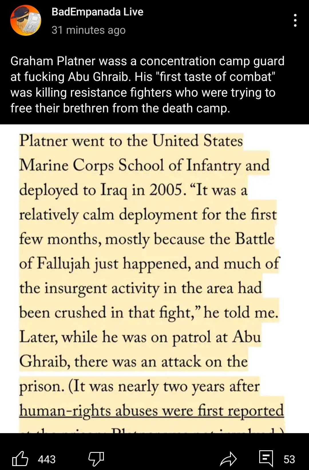 For the American people maybe. Same with Graham. But this harm reduction argument takes a nosedive when you factor in non American people which you consider subhuman.