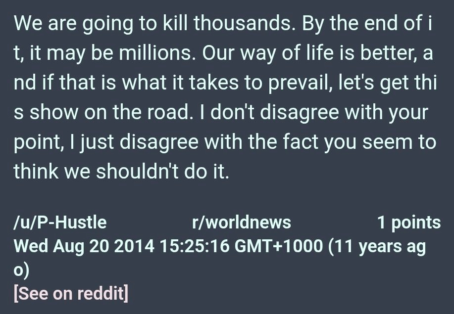 arrow-up1-10arrow-down1imageGraham Platner said he was going to kill thousands if not millions of Muslims because his way of life is betterlemmy.mlgeneva_convenience@lemmy.ml to Progressive Politics@lemmy.world · edit-25 days agomessage-square0fedilinkcross-posted to: [email protected]