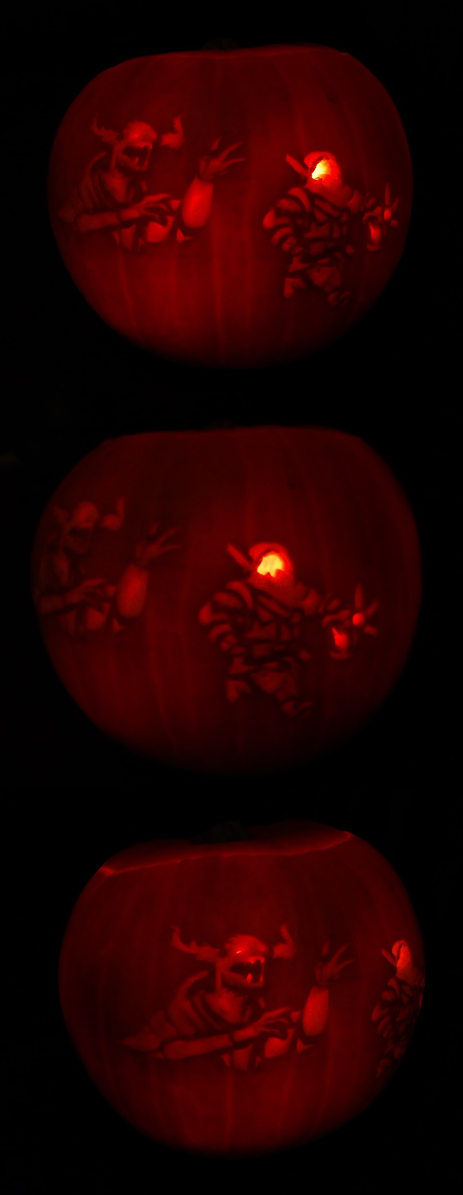 If I had a lot more patience it would be cool to try to recreate one of those slide reels as panels around the pumpkin