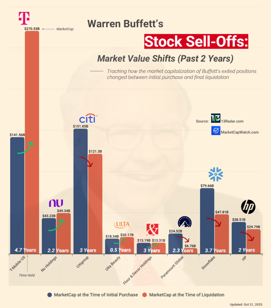 Even Buffett doesn’t bat 1.000. His exits show a mix of well‑timed wins (T‑Mobile) and painful retreats (Paramount, Snowflake).