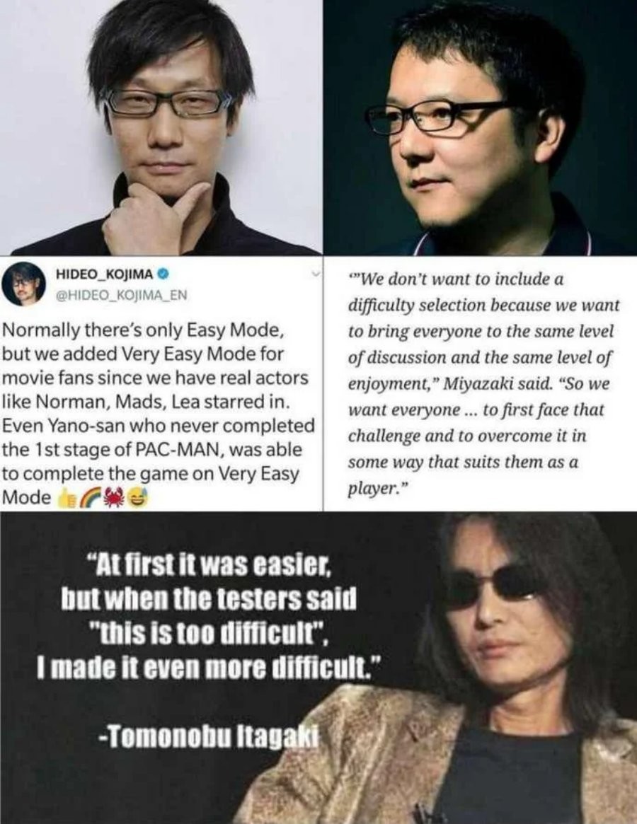 One of the big inspirations for Dark Souls was the manga Berserk. A man in an impossibly difficult position fighting against demi gods and the many monsters in that universe. You don’t see how a “normal” difficulty would destroy that vision?