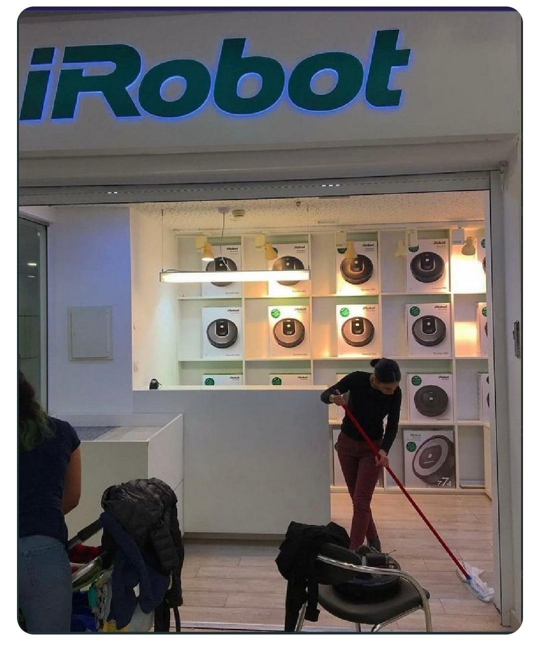 She’s not cleaning because the floors dirty, she’s just trying to pass the time, when I worked at a small shop that got fuck all customers, I cleaned that floor so much, I think I stripped the top layer off.