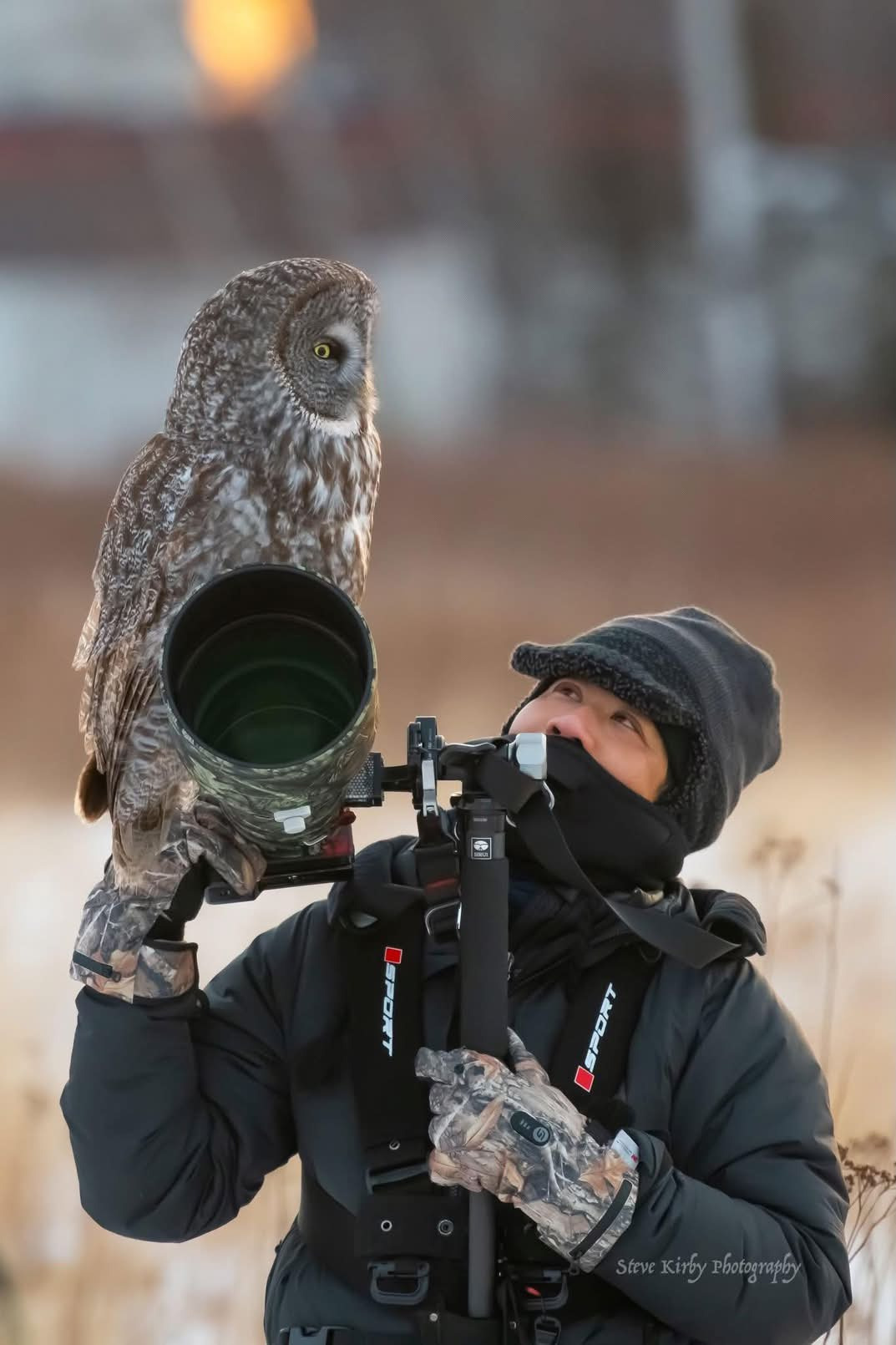 Owl: Nice ginormous lens, you got there! Be a shame if . . wait . . Be a shame if some- urf - something were to . . . *errgh* . . Dangit why can’t owls poop on demand.