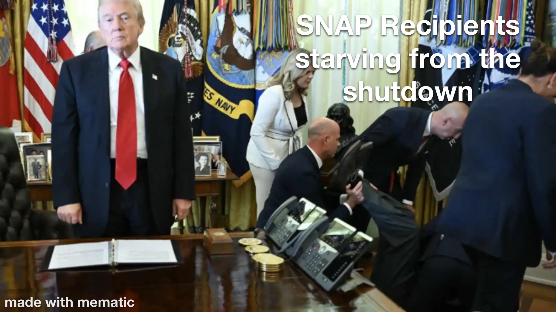 They aren’t starving from the shutdown, though. They’re starving specifically from Donald Trump.