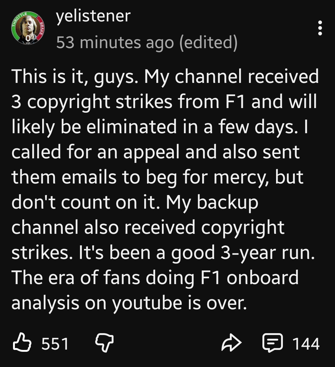 Fair use is a US concept, F1 is a British company so they most likely don’t legally recognize this as valid.