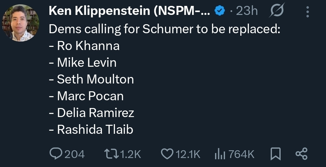 Also notable are the Dems completely dodging the question when asked. Senator Kelly for example pivoted to what he thought Dems needed to do going forward as far as fighting for the American people when ask if Schumer should be replaced, without explicitly saying he should. So it’s pretty clear that the sentiment is starting to be fairly widespread, but whether it really goes anywhere remains to be seen.