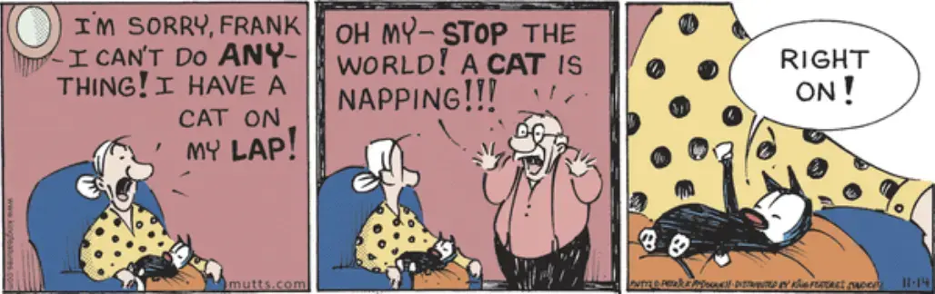 We very much understand, in my household, cat on a lap takes priority over any non-emergency situations.