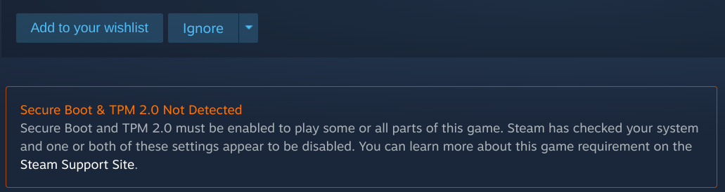 secure boot enabled with machine owner keys wouldn’t be enough either for these games