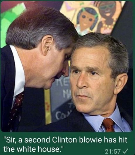 I like to think that in his personal life, Bush doesn’t read or watch any news at all, but just keeps some guy on hand to inform him of major events exactly like this.