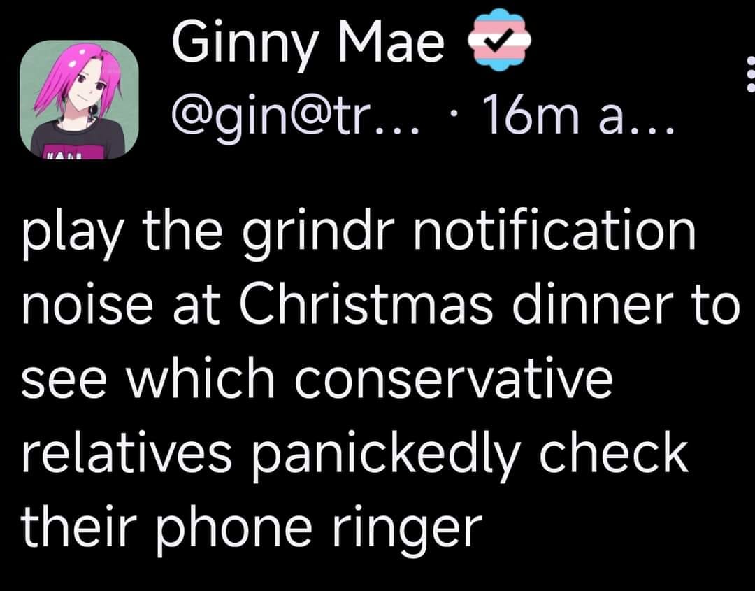 minus-squareSkunkWorkz@lemmy.worldlinkfedilinkarrow-up82·20 hours agoPlay the Pornhub sound and watch every teen in the family get a Pavlovian response.