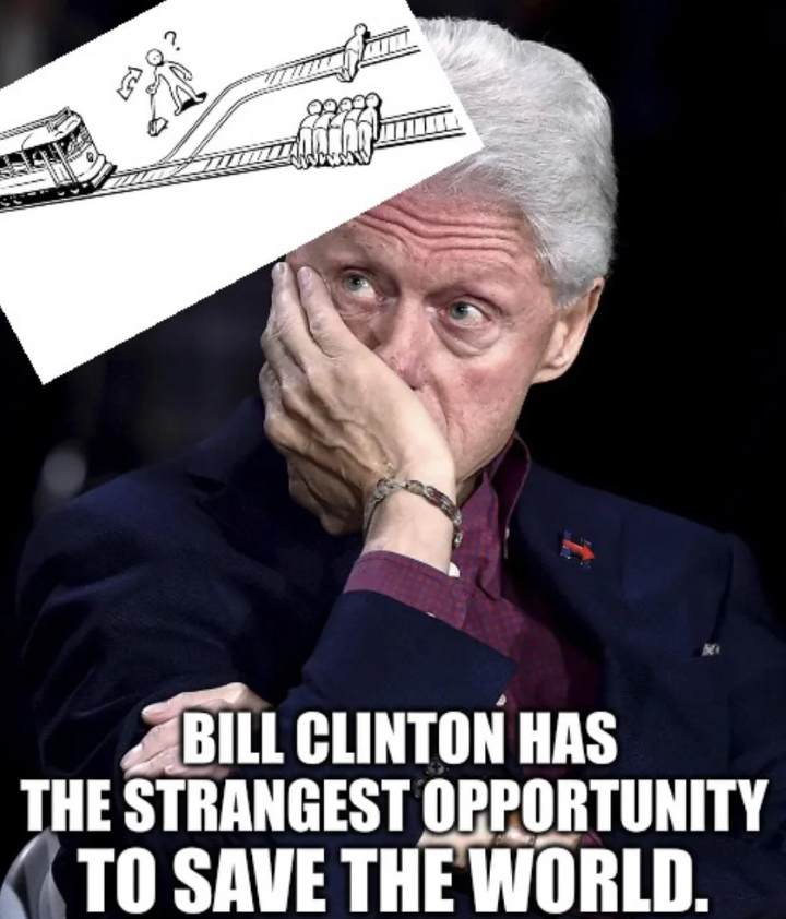 He should put on the same suit, use the same tone and pose, set against the same background as his the “I did not have sexual relations with that woman.” footage.