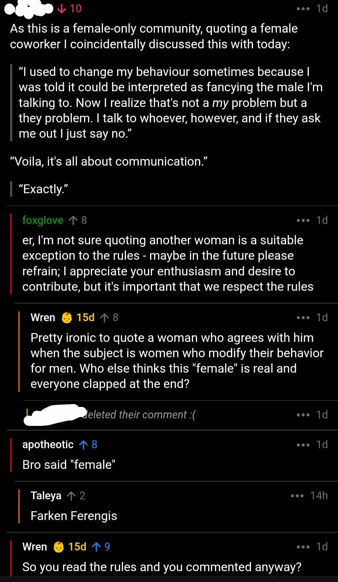 SchwertImStein@lemmy.dbzer0.com to Mildly Infuriating@lemmy.worldEnglish · edit-21 month agoDude read the rules of woman only community and decided to post anywaylemmy.dbzer0.comimagemessage-square327fedilinkarrow-up1372arrow-down1115