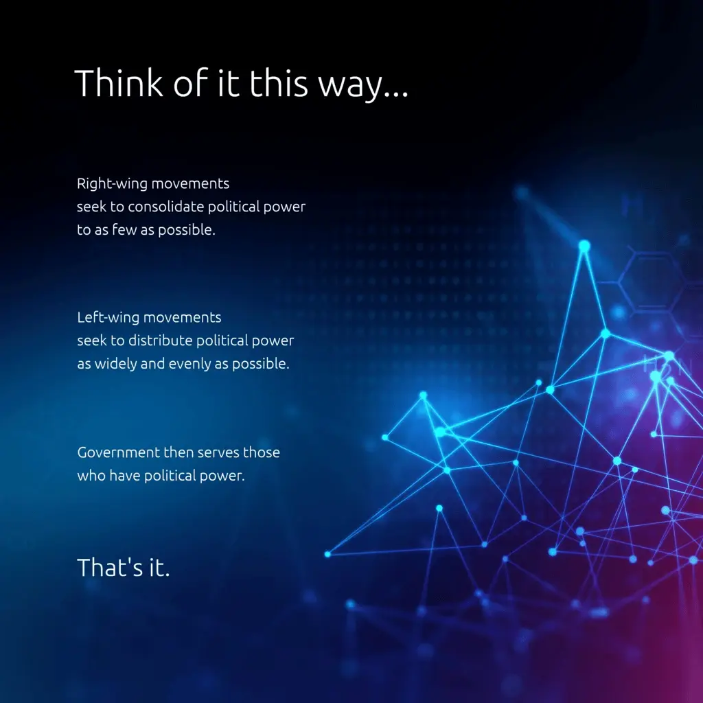 It’s more complicated than a one-dimensional left- right. That’s why someone came up with the political compass. Still doesn’t tell the whole picture, but it’s a more meaningful oversimplification.