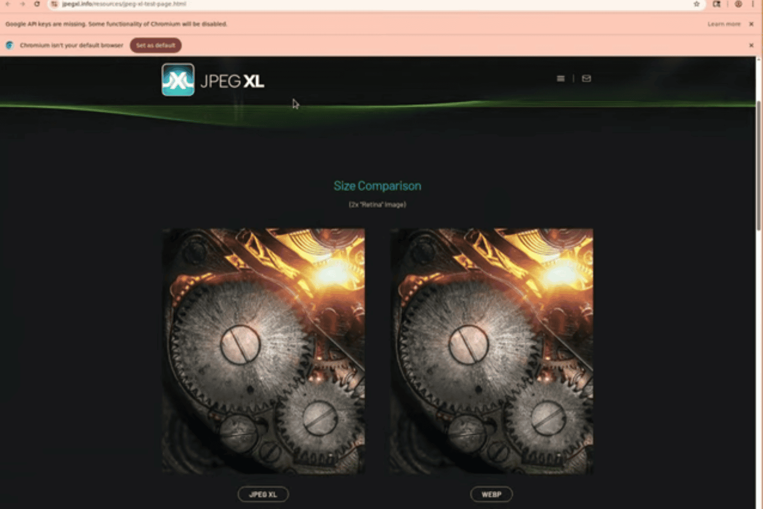 arrow-up1162arrow-down1external-linkGoogle Revisits JPEG XL in Chromium After Earlier Removalwindowsreport.commrdown@lemmy.world to Technology@lemmy.worldEnglish · 1 day agomessage-square41fedilink