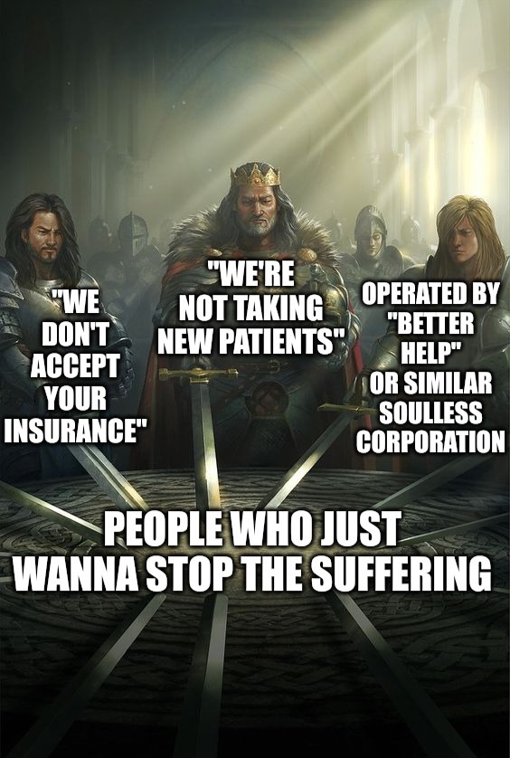 Still, thats not exactly a cure. I hope you can get the help you need 💜 like someone else said, id absolutely check with friends for any kind of recommendations, nobody (well, nobody worth a damn) will judge you, we all need some help sometimes