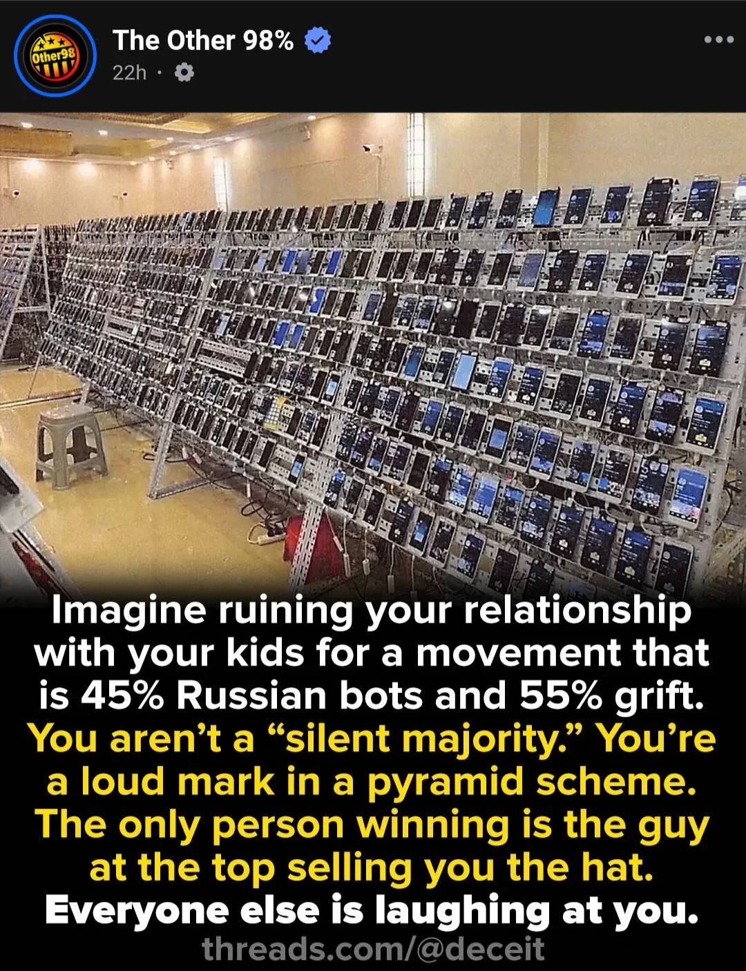 Yeah but why would facebook/x bother to check? Engagement is engagement. They already know there are millions of bots and don’t care.