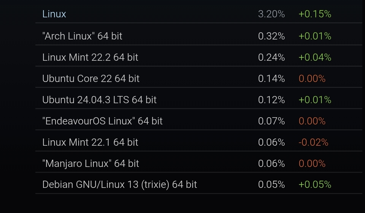 arrow-up1775arrow-down1imageLinux continues to grow and has reached a new peak of 3.20% in the November 2025 Steam Hardware & Software Surveylemmy.mlmr_MADAFAKA@lemmy.ml to Linux Gaming@lemmy.worldEnglish · 22 days agomessage-square179fedilinkfile-text