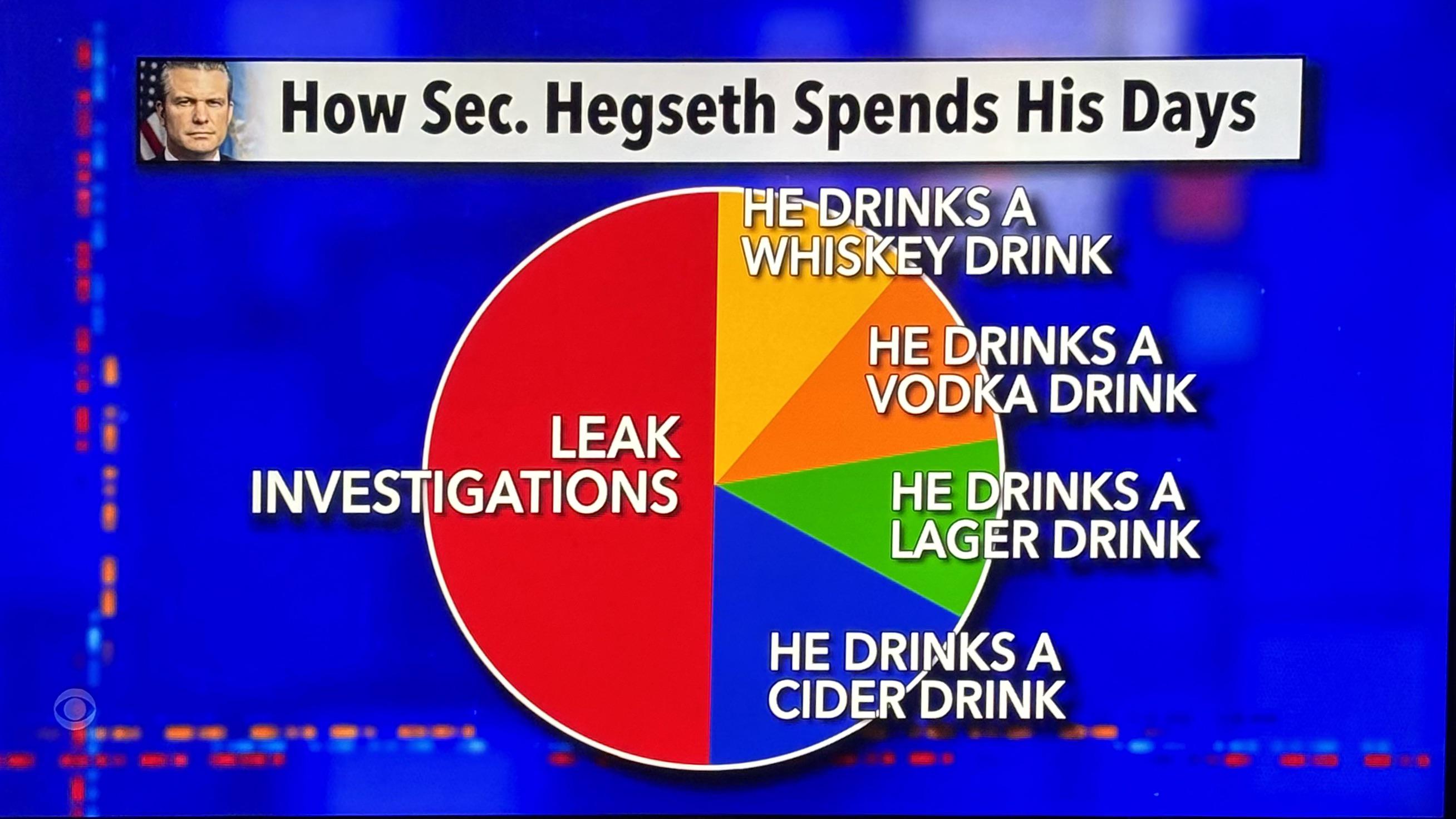 Gotta add a portion for taking a leak after all the drinks, and another for leaking things via Signal.