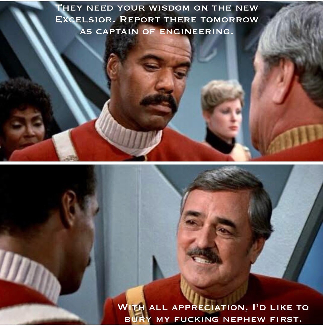 I had to look it up - apparently this guy’s relation to Scotty is only explained in the director’s cut of Wrath of Khan https://memory-alpha.fandom.com/wiki/Peter_Preston