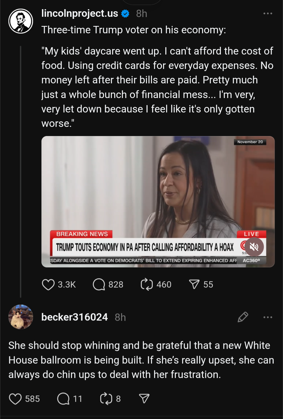 I’m not about to sympathize with these idiots now that they’re suffering just to have them screw everything up AGAIN if we’re fortunate enough to somehow claw out of this mess with SOMETHING like a civil society left. We didn’t get burned hard enough by that when these idiots all voted AGAIN for him in 2024? Having learned nothing?