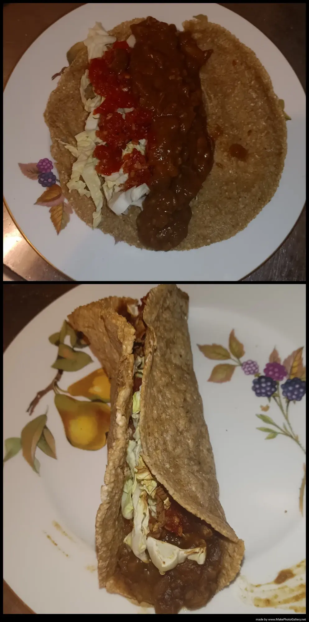 Homemade oat-tortillas formed in to tacos, then air-fried a bit to firm and crisp-up ‘em up. Absolutely delicious, but also proved to be one of Hercules’ fabled labors in order to get 'em right.