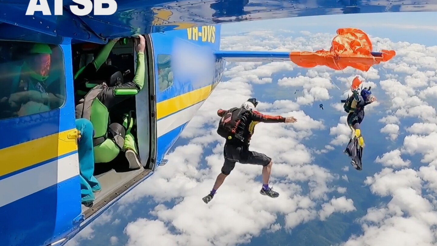 The skydiver, Adrian Ferguson, used a hook knife to cut himself free and sustained minor leg injuries during the incident on Sept. 20 that began at Tully Airport in Queensland state.