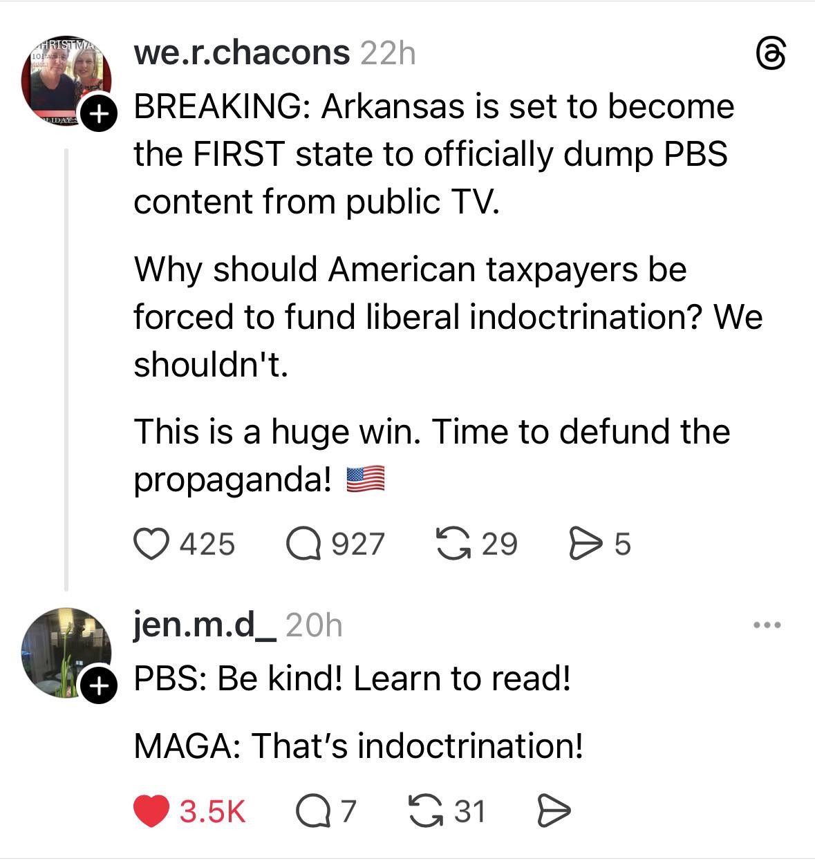 arrow-up11.59Karrow-down1imagePBS is "the propaganda"?discuss.onlineByteOnBikes@discuss.online to Microblog Memes@lemmy.worldEnglish · 1 day agomessage-square227fedilink