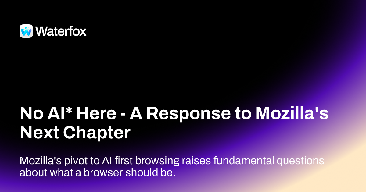 If Firefox releases AI things you can’t just turn off, that can be easily invoked by accident—gestures, keyboard shortcuts, or whatever—that might send page content to an LLM, then I will stop using it. Until then, I’m happy with Firefox. It will always be more up to date than the derivatives.